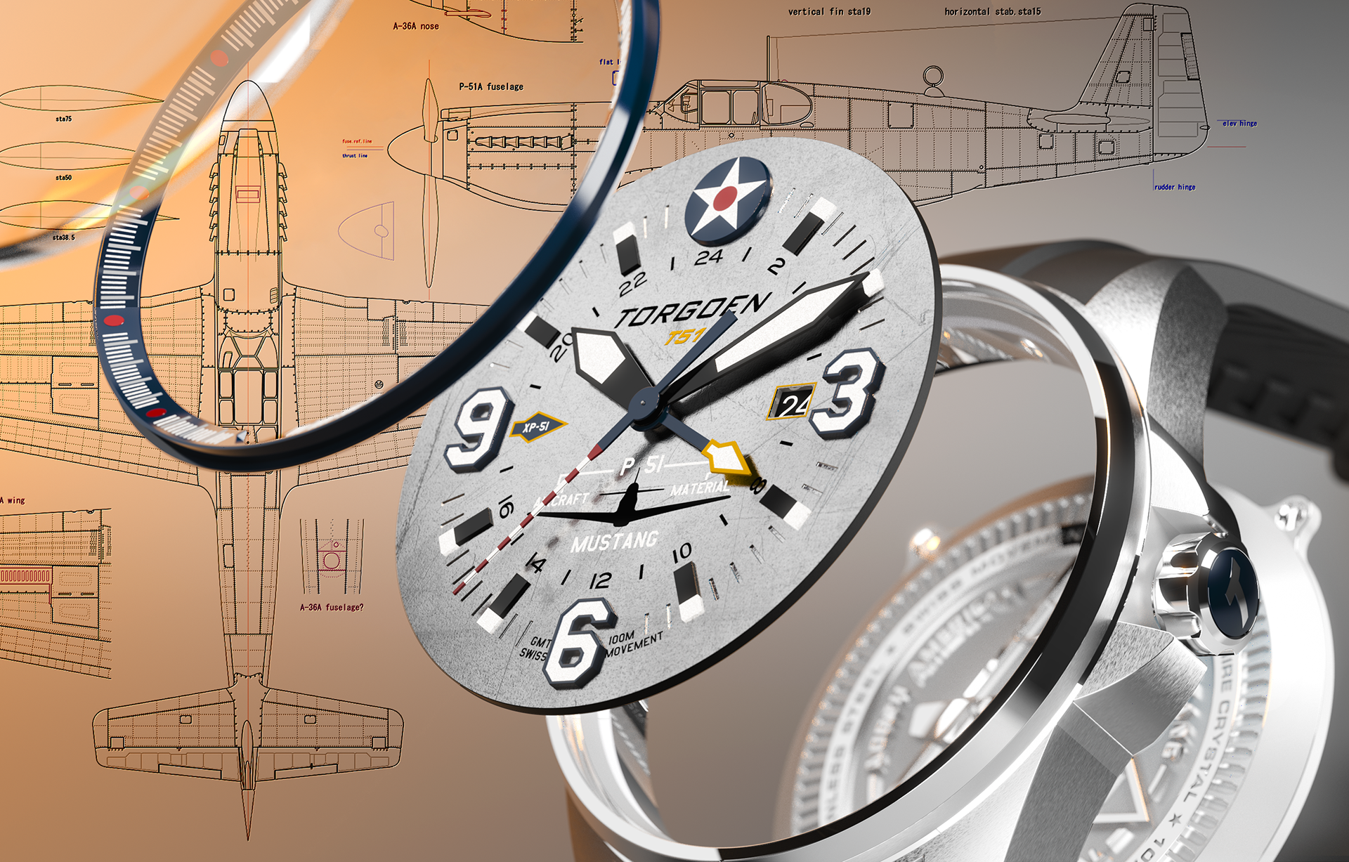 Torgoen has partnered with Pacific Fighters, masters of historic aircraft restoration, to create a watch that doesn’t just honor the Mustang — it embodies it. Every dial incorporates real P-51 flap skin, allowing you to wear the aircraft’s legacy on your wrist. Limited in production, each watch is a tribute to the Mustang’s precision, performance, and pioneering spirit — a tangible link to one of aviation’s most iconic aircrafts.